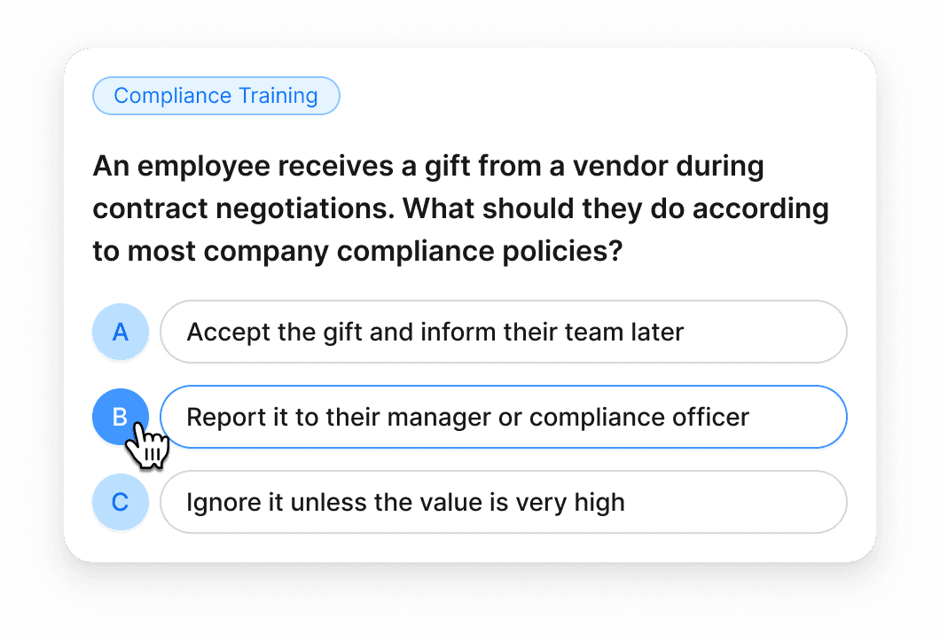 Empower compliance with AI-driven learning, assessment, and reporting.