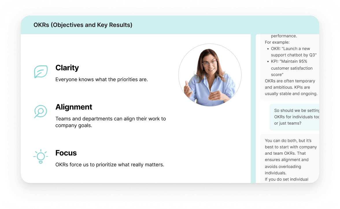 Plain-language answers, decision support, and credential prep on demand.