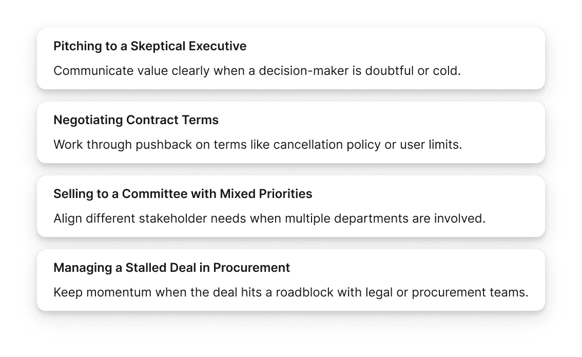 Empowering sales teams with real-world practice scenarios to accelerate readiness, build confidence, and drive consistent performance across key selling motions.