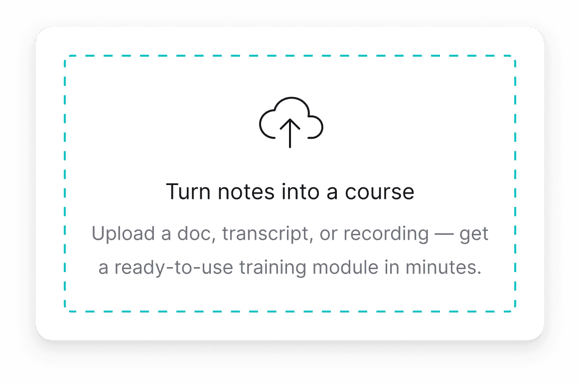 AI turns talk tracks, docs, or screen-shares into polished modules in minutes.
